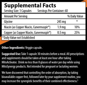 Extra Strength Formula, with its one of a kind patented Cunermuspir (Copper Niacin), is the product with the least ingredients to maximize the coppers effect. Contains six times the amount of copper as the MitoActivator LDS. 2 Month Supply.